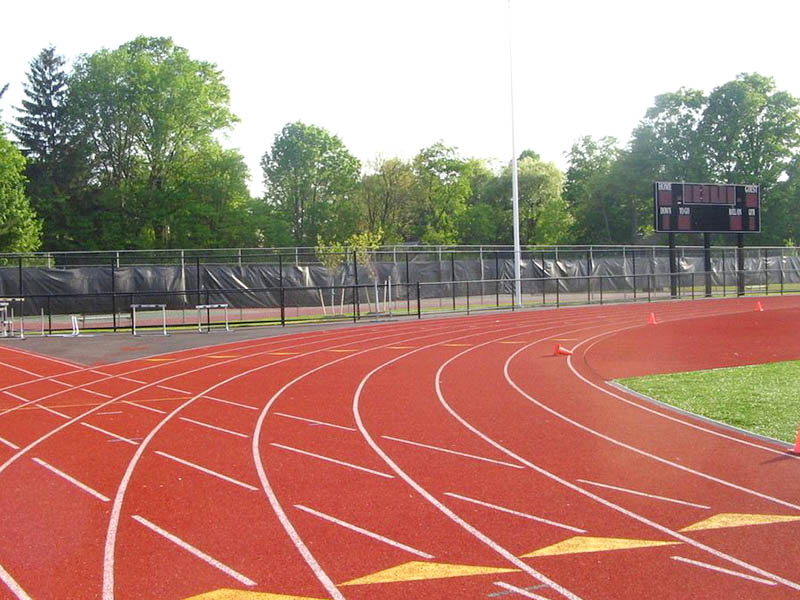 外型:無裂縫或?qū)哟螤顩r;地面防滑層與底膠層黏合堅固、勻稱;接縫處豎直、無顯著凸凹狀況;表層顏色勻稱、耐久度。標示線:標示線應清楚、不返光,無顯著虛邊,與整體面層黏合堅固。各標示線部位距終點間的間距長短不允許出現(xiàn)負差,其正差應低于1/10000。塑膠跑道平面度達標率不小于85%。用以賽事的塑膠跑道的薄厚不小于13mm,別的非賽事用輔助總面積薄厚可由甲乙雙方商談。塑膠跑道的橫著傾斜度不超1:100,豎向傾斜度不超1:1000。